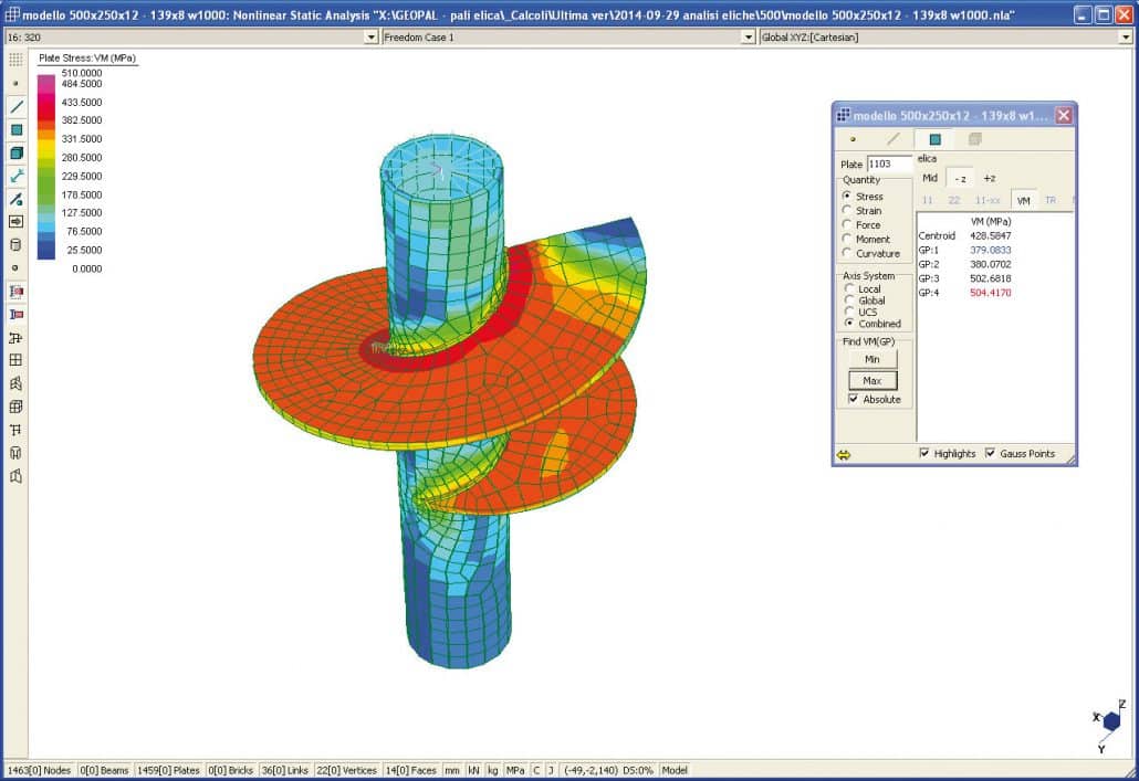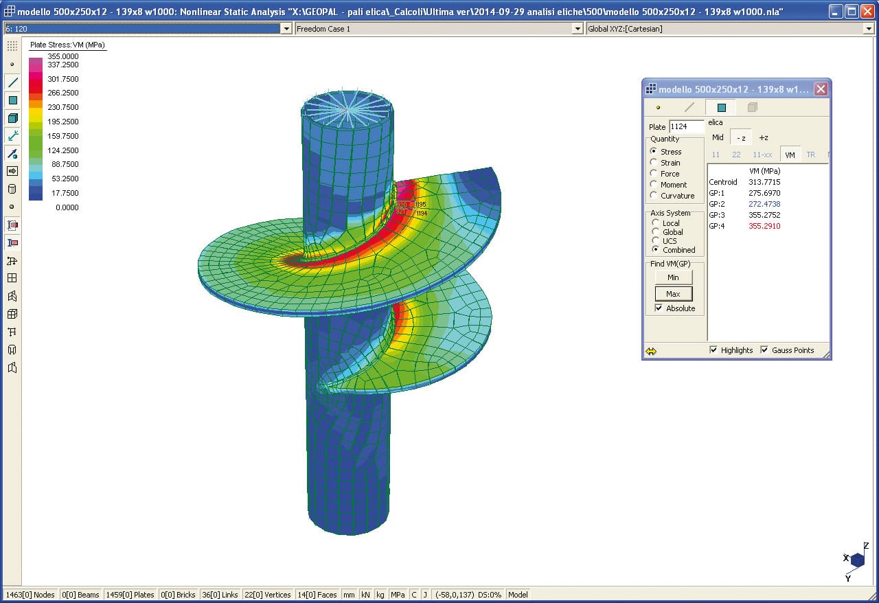 Per il calcolo della resistenza ultima strutturale degli elicoidi in differenti configurazioni palo-elicoide, al crescere del carico verticale applicato all’asse del fusto, si utilizza il metodo di “analisi globale elasto-plastica” e la capacità resistente viene valutata con il “metodo elasto-plastico” (come da D.M. 2018).