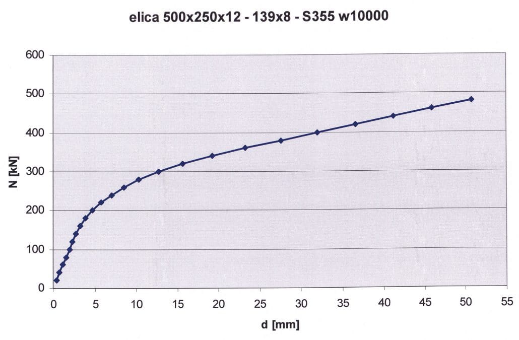 La resistenza meccanica ultima del sistema fusto-vite, che dipende da più fattori tra cui la geometria (diametro, spessore, passo), la lavorazione (a caldo, a freddo o mista), la tipologia di acciaio etc., è stata verificata al crescere del carico verticale applicato in corrispondenza all’asse del fusto.